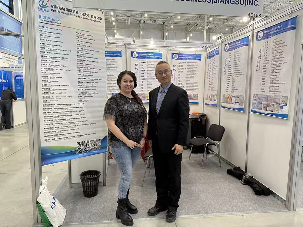 The 2025 Russia International Chemical Exhibition (KHIMIA 2025) will be held at Moscow's Timiryazev Centre from November 10 to 13, The company sent a delegation to the exhibition under the name of Epoch Master Globle Business (Jiangsu) Inc., we engaged in business negotiations and established partnerships with over 150 clients from China, Russia, Belarus, Turkey, India, and other countries. The event achieved remarkable results: It significantly boosted the visibility of our company's core products—including basic chemicals, food additives, feed additives, specialty chemicals, active pharmaceutical ingredients (APIs), and pharmaceutical intermediates—in the Russian market. The initiative not only strengthened existing client relationships and uncovered new demand, but also precisely reached out to potential buyers with actual purchasing intentions. We successfully secured on-site purchase agreements and accumulated high-quality client resources, achieving all anticipated objectives.